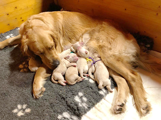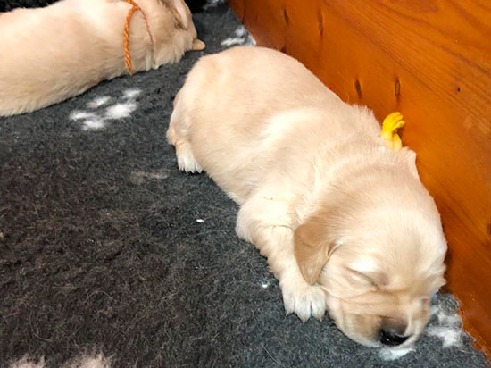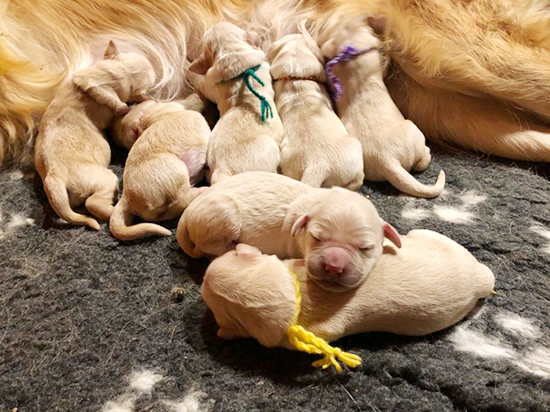Die Welpen sind eine lustige lebendige Schar. Wir freuen uns, dass alle einen Lebensplatz gefunden haben. Unser nächster Goldenwurf ist im 2020 ! Im Herbst werden wir einen Wurf Flat aufziehen mit unserer Hündin Lia. Mehr über die Welpen siehe Aktueller Wurf ![]() |